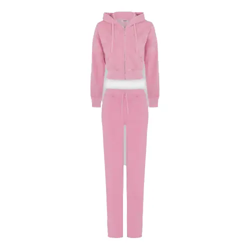 - Design: A coordinated tracksuit that includes a pullover hoodie and matching jogging bottoms in a soft, washed pink colorway.