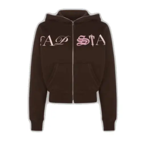 This tracksuit stands out with its bold brown and pink colourway, featuring a rich brown base contrasted by vibrant pink graphic details. The hoodie showcases the signature Trapstar script logo across the chest and back, finished with a textured, premium feel.