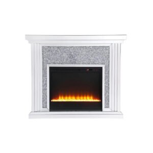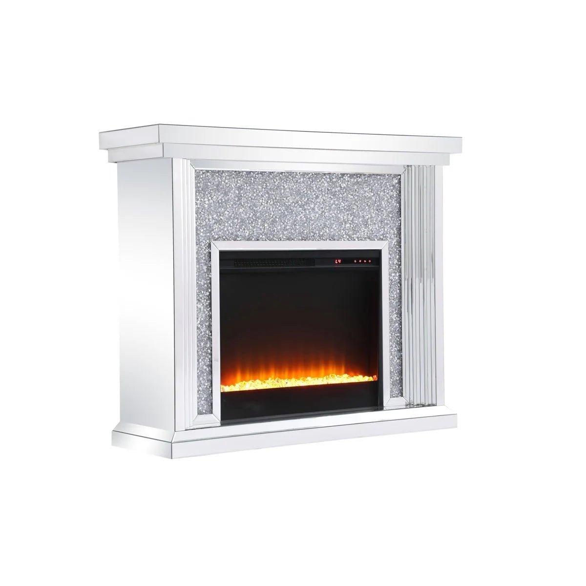 Dressed in a galaxy of dazzling silver crystals and accentuated with gleaming mirror panels, this fireplace is never one to shy away from the spotlight. Whether you are hosting a formal dinner party with associates or a casual get-together with your loved ones, the comfort of the crackling fire in the crystal insert will put all your guests in a relaxed and merry mood. Show off your own personality by decorating the mantle with your treasures-family portraits, prized works of art, or fragrant flowers.