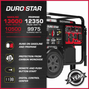 13000-Watt Push Button Start Dual Fuel Gas and Propane Powered Portable Generator